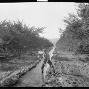 [Man digging in irrigation canal. Johan Hagemeyer?] [negative]