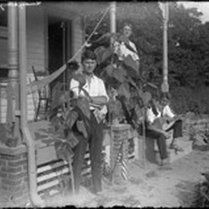 Image / Sondag, 6 Augs. 1911. [Three men on porch.] [negative]