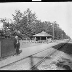 Image / [Johan Hagemeyer (?) at Edenvale, California, train station.] [negative]