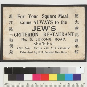 Jew's Criterion Restaurant card