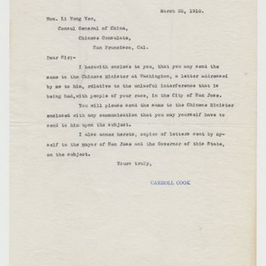 Letter to Li Yung Yew from Cook: 22 March [i]