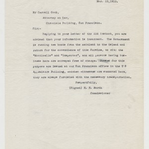 Letter from H.H. North to Carroll Cook