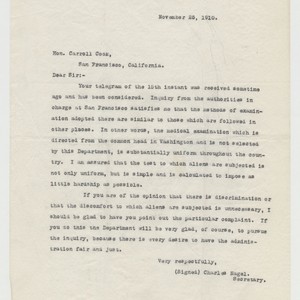 Text / Letter from Charles Nagle to Carroll Cook