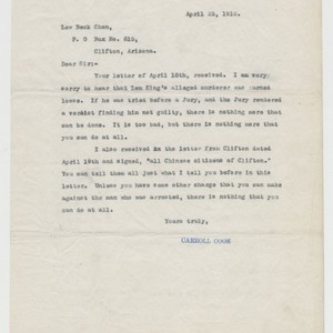 Text / Letter from Cook to Lew Beck Chen: 25 April
