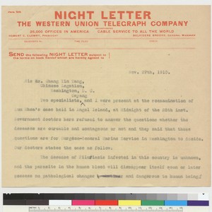 Telegram to Chang Yin Tang from Li Yung Yew