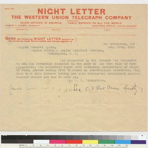 Telegram to Surgeon General Syman from Dr. G.H. Richardson