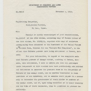 Text / Letter to Supervisor Inspector from Charles T. Cornell