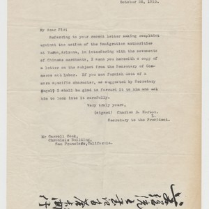 Letter to Cook from Charles Norton