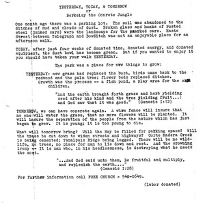 Flier reflecting on the beauty of the park and warning about what tomorrow will bring.