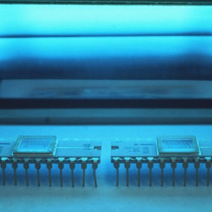 Color slide of the Intel 1702 Memory chip package. Dov Frohman, today president of Intel's operations in Israel, invented the world's first erasable, programmable read-only memory 1702 EPROM, introduced by Intel in 1971.