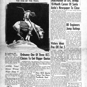 Man O' War newspaper of the Ordnance Training Center at Camp Santa Anita, Arcadia, California. Issue date May 19, 1944.