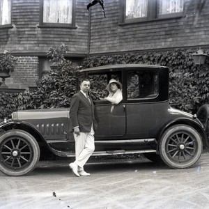 Alfred C. Bach, Sr. and his wife, Louise, with their circa 1922 Peerless Coupe in front of the Bach Estate in Kentfield, Marin County, California.