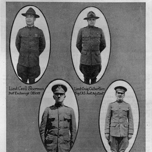 Page 9 of The Arcadian Observer, Official Publication of the United States Army Balloon School, Arcadia, California. September 1918 Supplement. Featuring photographs of U.S. Balloon School officers Lieutenant Cecil Sherman, Lieutenant Craig Culbertson, Lieutenant O.F. McLaughlin and Lieutenant Gordon Jacques.