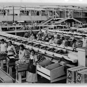 The Ranchito Packing House in Rivera. Workers are shown with crates of fruit.
