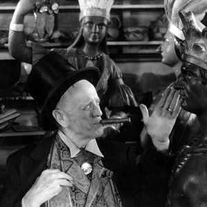 William Parker Lyon with cigar in his mouth, hand raised to touch one of the Indian figures. Pony Express Museum.