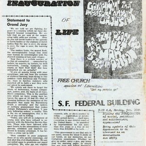 The Free Church organized a prayer meeting in front of the San Francisco Federal Building. The flyer requested that those attending should "bring symbols of this oppression to be cleansed as we demonstrate our unity." During the vigil, two women poured red die into fountains and onto the sidewalks and buildings. While they were being taken into custody and brought into the courthouse, York stood in their way and was also arrested. Along with York, Bishop Michael Itkin, the gay religious activist later to be canonized in Moorish Orthodox Church in America as Saint Mikhael of California, was also arrested for disorderly conduct.