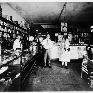 Frank and Flora McCoy in their general merchandise store at 233 N. First Avenue. Woman is holding a baby.