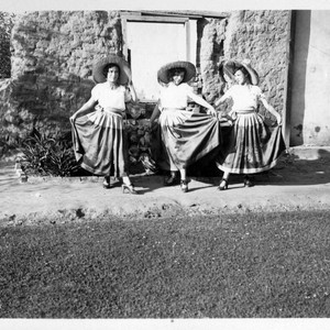 Celebration at Pio Pico Ranch. 3 young women are dressed in traditional Mexican outfits.