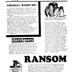 The Subversive Church, April 1970, newsletter, mostly about police and military issues.