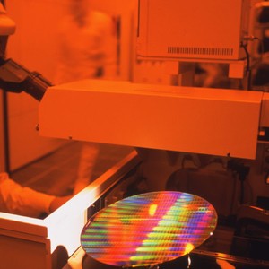 Electronic industries; Intel microprocessors; Manufacturing; Microscopes; People; Photographs; Santa Clara (Calif.); Santa Clara County (Calif.)--History; Semiconductor wafers; Technicians; Technology
