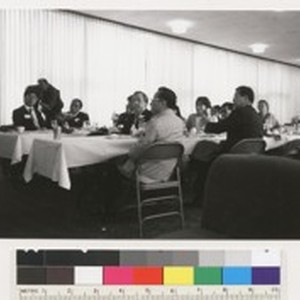 Kurt Lauridsen, Johnson Chu, Mary Ann Skrivanich, Susan O'Hara and unidentified people sitting at a table