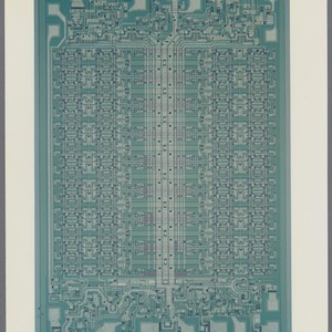 Enlarged color photograph of the 3101 64-Bit Schottky Bipolar RAM Die. Intel's first successful product, the 3101 Schottky bipolar memory, a 64-bit high speed static random access memory (RAM) was introduced in 1969, just nine months after the start-up. Bipolar memories were not new, but Intel adopted an innovation, Schottky bipolar technology, (named for German physicist, Walter Schottky). Not only did it work like a charm, but the company beat its competitors to the market.