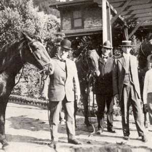 Seen here are John McLaren (Superintendent of Golden Gate Park and Landscape Architect for the P.P.I.E.), and party returning from Santa Venetia's Redwood Trail. This image is from a promotional brochure published in 1914 by Mabry McMahan to promote his Santa Venetia (Marin County) development plan. McMahan was responsible for filling in Santa Venetia's marshland and creating a series of canals, on which he hoped to build a luxury subdivision modeled after the Italian city of Venice. McMahan's plans failed to be realized due to the economic hardships of WWI. After WWII, San Venetia was developed into one of San Rafael's residential neighborhoods, although not in the style envisioned by McMahan.