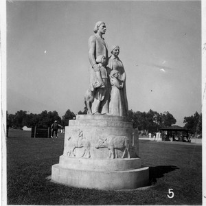 Statue of Hugo Reid family at Arcadia County Park c. 1937
