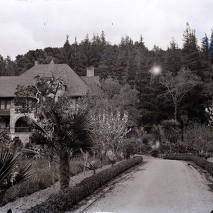 The drive and gardens to Charles Bach estate in Kentfield, Marin County, California, circa 1902.
