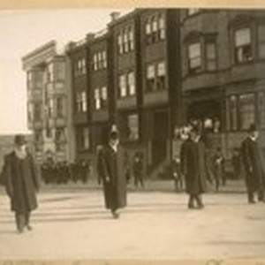 L to R: Police Commissioners Leggett, Sweigast and Cutter with Sect. Skelly at the Funeral of Sergt. Notting, 1910