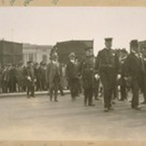 Capt. Wall, Jesse B. Cook, Mr. Thos. E. Shumate, Chief W. J. O'Brien, Lieut. Copeland, Mayor Rolph