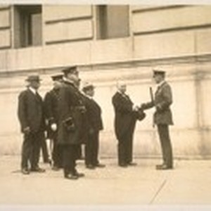 Nov. 3/28. [The annual inspection of the San Francisco]] Police Dept. with Capt. Chas. Goff, Mayor Jas. Rolph, Jr. Theo. J. Roche, Chief W. J. O'Brien, Capt. J. J. Casey, Capt. J. J. O'Meara and Jesse B. Cook