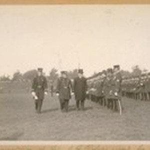 Inspection of the S.F. [San Francisco] Police Dept. by A.D. Cutter and Wm. J. Biggy in G.G. Park. Capt. J. Duke on the left. 1907-Capt. Duke's Co