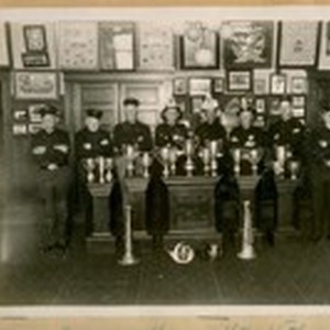 Picnic Committee of the Veteran Firemen's Ass., L. to R.: Alf. Florence, D.F. McAuliff, Chas. Reinfelt, Sam Baker, Phil. Diez, J.J. Cain, Fred Shade, and Con. Connell - July 15th, 1926