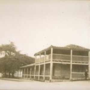 The custom house built in 1814 at Monterey Calif. of adobe. It was the first building that the first American flag was raised over in Calif. by Commander John Drake Sloat on July 7th 1846--signaling the passing of Calif. from Mexican rule. It stands at the cor. [Decatin?] and the Main St. This photo was taken Jany. 1929