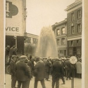 Image / East on Jackson St. from Kearny St. April 1924. Broken Water Pipe