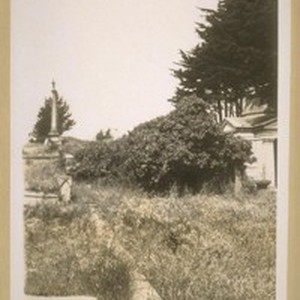 The tomb of Michael Skelly in Calvery Cemetery. He was born in the county of Rosecommons, Ireland in 1826 & died Feb. 21st 1896. He was an old San Francisco man, he built the old Folsome [Folsom] St. Horse Car line and controled [sic] it up to the time of his death. His tomb is out of sight as it is all over grown with ivy. May 10th 1929