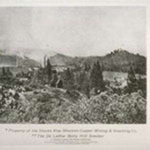Property of the Shasta May Blossom Copper Mining & Smelting Co. The De LaMar [i.e. Delamar] Bully Hill Smelter. [Both locations in photo indicated by asterisks.] In Shasta County, Northern California. Now producing from $6,000 to $10,000 per day in copper-gold-silver bullion. Total for first five months' operations, $1,000,000 [Copy print.]