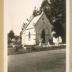The tomb of Bryan O'Connor in Holy Cross Cemetery who died on Aug. 28th 1887. He was one of the founders of O'Connor, Moffatt, Kean Co. The store opened first in 1860 at 2nd & Market Sts. and then moved to South side of Post St. bet. Kearny & Grant Ave. They are now located at the N.W. cor. Stockton & O'Farrell Sts. May 10th 1929