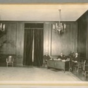 Outer office of the Mayor's, 1919. Det. Gallagher at the desk and Det. Burkon his left