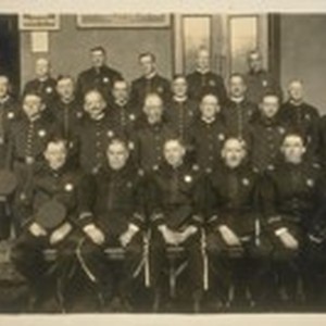 Full title. Next row Left to Right. R. Gaynow -- Jas. McDormitt -- P. Maloney -- T. Boyne -- Jas. Read. Next row Left to Right. Nelse Stohl -- Chas. J. Ward -- P. McGee -- Pat Murry -- Jas. Powers -- Gil. Chase -- Chas. Phiffer. Next row Left to Right. Sam Miller -- B. Judge -- Wm. Quinn (now Chief of Police) -- J. Bolan -- Mike Reardon. All San Francisco Police Officers.
