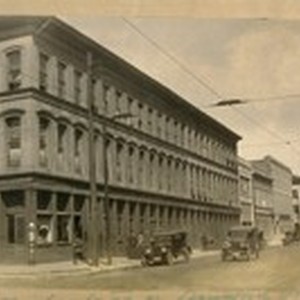 North from Washington St. on Sansome St. April 1924. These buildings were built about 1856