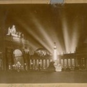P.P.I. Ex. [Panama-Pacific International Exposition] 1915. [Arch and Fountain of the Setting Sun, Court of the Universe, at night.]