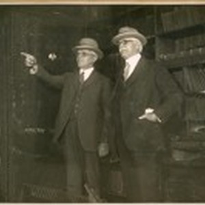 L. to R.: Capt. of Police Lackmann and Jesse B. Cook in the Police Photograph Gallery after the fire of Aug. 1925