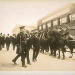 Nov. 3/28. [The annual inspection of the San Francisco] Police Dept. with Mayor Jas. Rolph, Chief W. J. O'Brien and Theo. J. Roche, in the rear of them is Commissioner Andrew F. Mahony and Jesse B. Cook