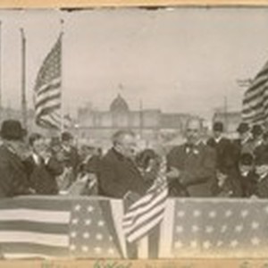Photo same Mayor Rolph introducing Ex-Mayor Taylor. [at groundbreaking for the new City Hall.]