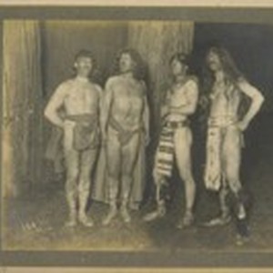 Bohemian Grove. 1908. [Herman George Scheffauer, second from left.] [Photograph by Gabriel Moulin. No. 154.]