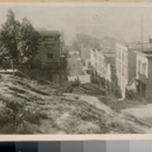 South from the top of Telegraph Hill in 1870. South on Kearny St. from the top of hill