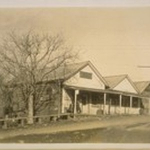 This is Carson Hill--Calaveras Co. The building on the end is a stone building, built in 1854 and the first building is the post office. There are about one dozen buildings in this town. Photo taken on Jany. 1929