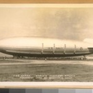On May 21/32, later destroyed. U.S.S. Akron, World's Mightiest Airship, permanent home at Sunnyvale, Calif